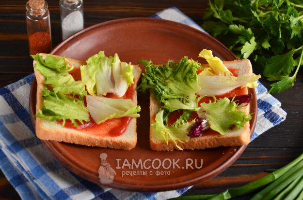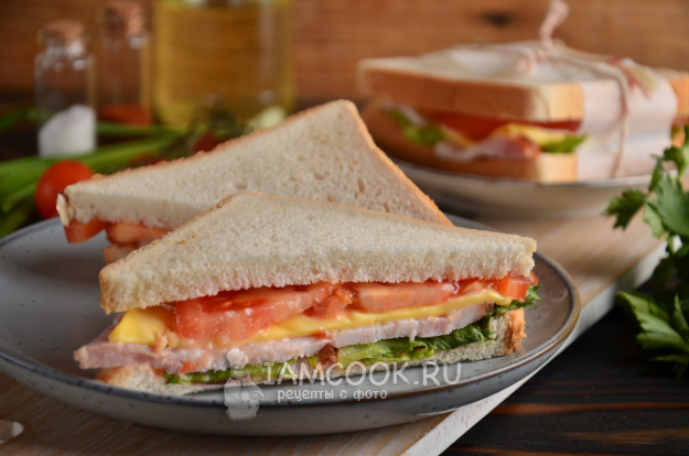 Накройте всю конструкцию вторым кусочком хлеба и сэндвич готов.