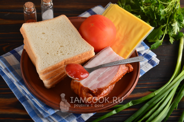 Сначала нужно подготовить все ингредиенты для сэндвичей с грудинкой. Помидоры и зелень нужно тщательно вымыть.
