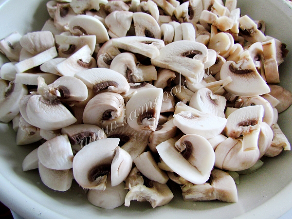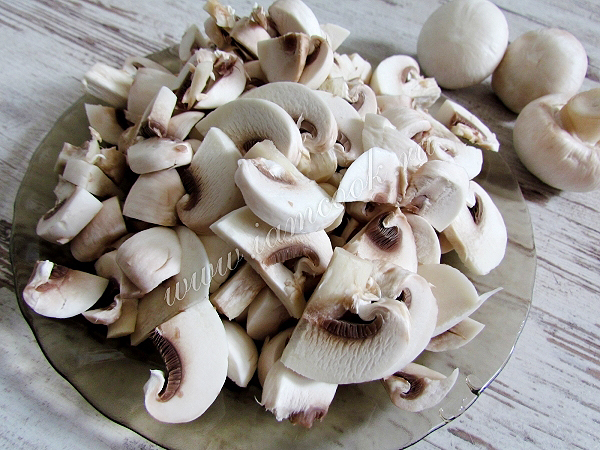 Грибы промойте, просушите и нарежьте тонкими пластинами.