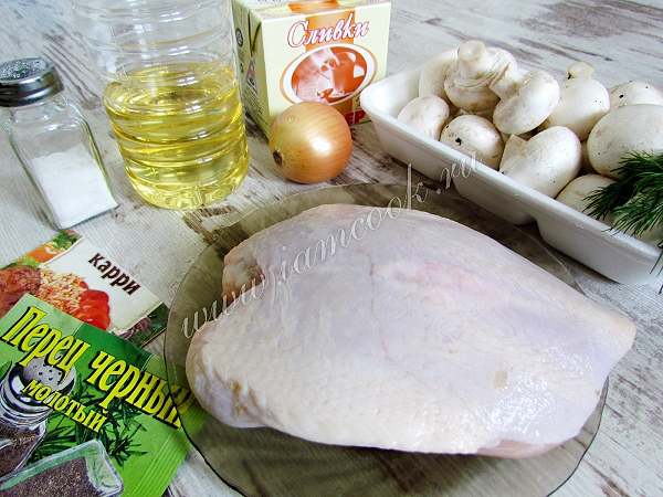 Влейте сливки, добавьте карри, щепотку черного молотого перца и соль по вкусу. Перемешайте, снова накройте крышкой и тушите ещё около 5 минут.