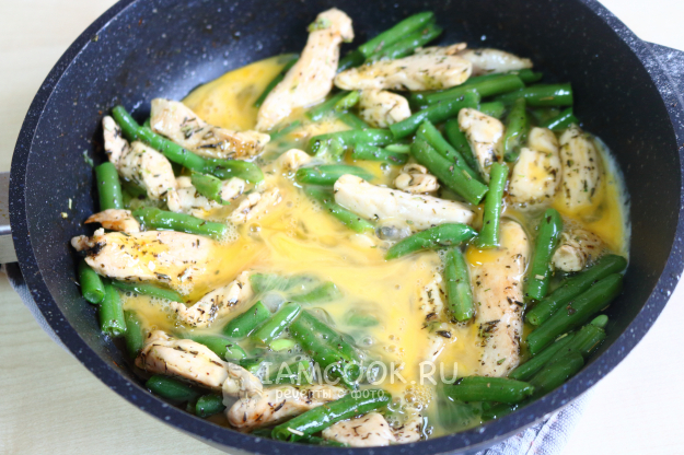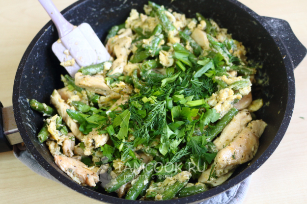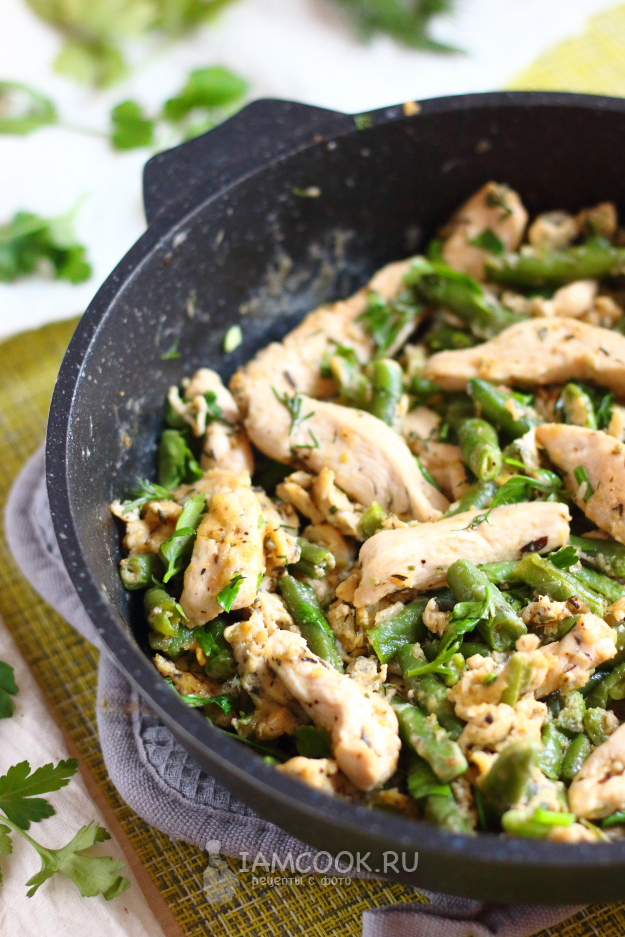 Стручковая фасоль с курицей и яйцом готова! Подавайте с гарниром или в качестве самостоятельного блюда. Приятного аппетита!