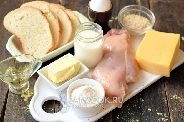 Подготовьте необходимые продукты для пожарских котлет с сыром. Сливочное масло заранее достаньте из холодильника, чтобы оно стало мягким.