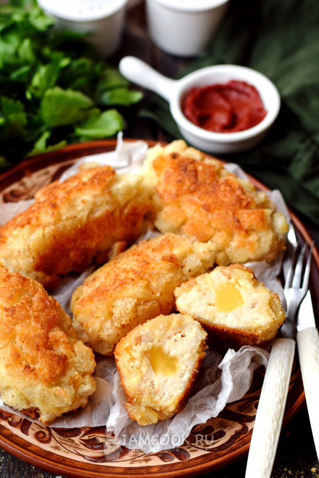 Готовые пожарские котлеты с сыром подавайте на стол в теплом состоянии, пока сыр внутри мягкий.
