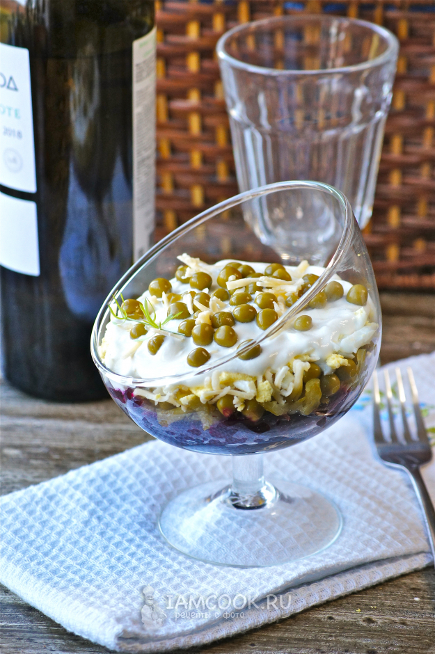 Салат «Простушка» со свеклой и маринованными огурцами готов, можно подавать на стол.