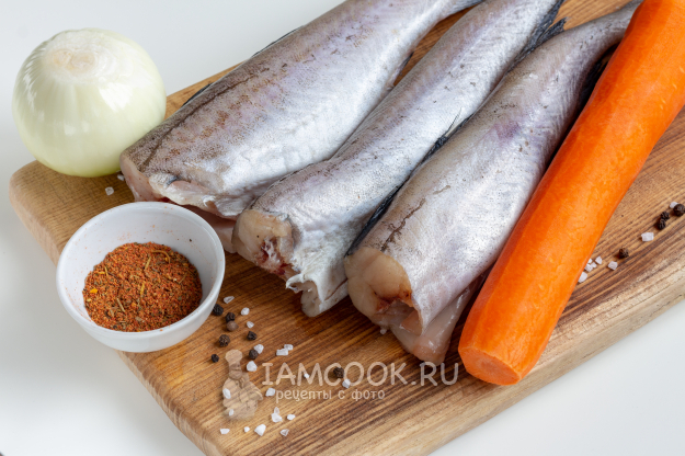Ингредиенты для приготовления минтая с луком и морковью в духовке в фольге - перед вами. Рыбу нужно заранее разморозить и помыть. Овощи тоже почистить и помыть.