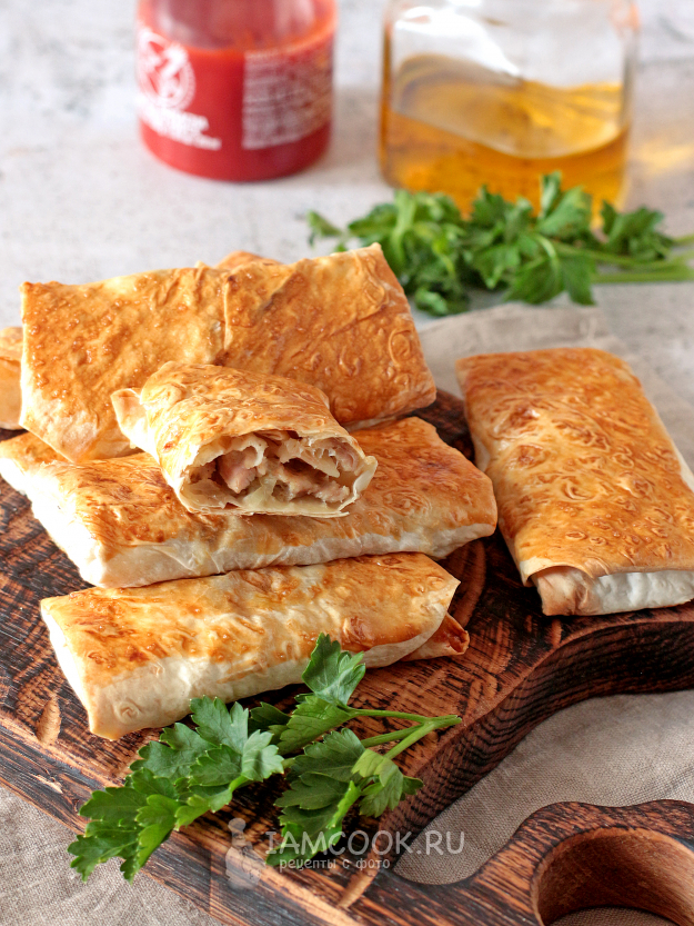 Готовые конвертики подавайте с пылу с жару. Приятного!
