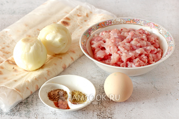 Подготовьте продукты для конвертиков из лаваша с курицей.
