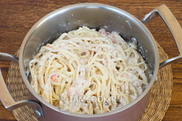Перемешайте, чтобы соус максимально равномерно распределился по всей поверхности лапши.