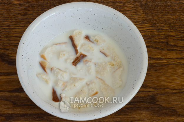 Залейте сухарики из батона молоком и оставьте на 10 минут.