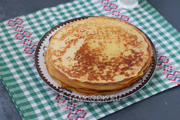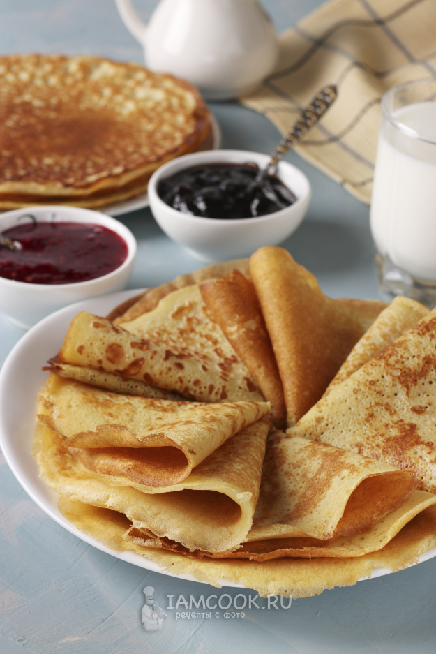 Эти блинчики не стоит делать слишком тонкими - они просто будут рваться. Количество сахара в блинах можно увеличить. Мерный стакан не обязательно должен быть 250 мл - важнее одним стаканом отмерять муку, ряженку и молоко.