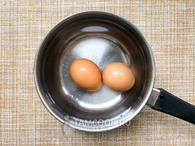Куриные яйца для начинки отварите в течение 10 минут после закипания воды.