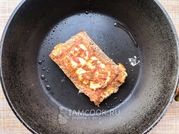 Аккуратно переверните и готовьте еще 1 минуту. Повторите процедуру со вторым куском хлеба.