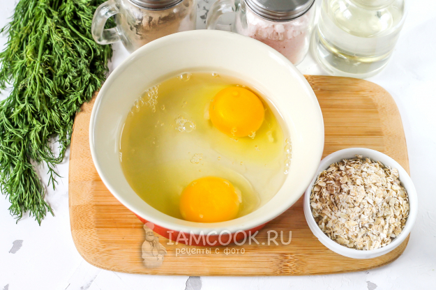 Куриные яйца вбейте в глубокую пиалу или миску, тарелку. Взбейте их вместе с щепоткой соли и водой.