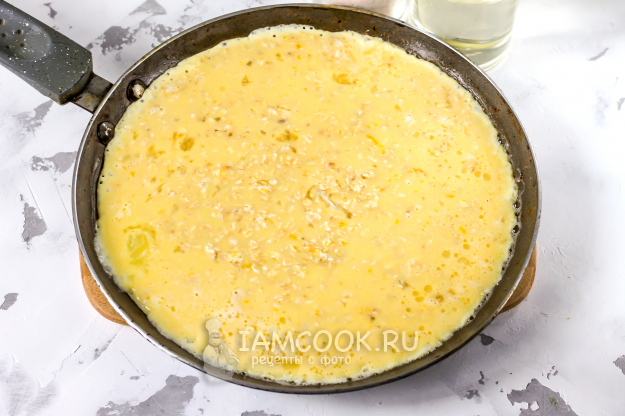 Прогрейте сковороду с 1 ч.л. растительного масла, которое смело можете заменить сливочным топленым. Вылейте на сковороду яичную массу и обжарьте овсяноблин примерно 1-2 минуты на умеренном нагреве, затем переверните на другую сторону и обжарьте еще минуту. Выложите на тарелку.