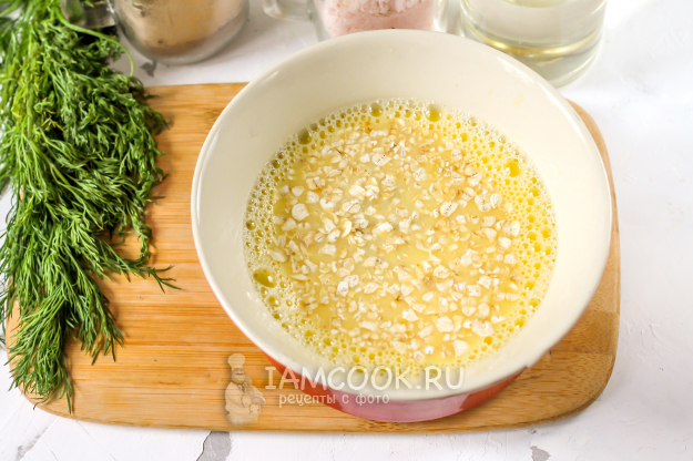 Всыпьте в емкость овсяные хлопья, перемешайте и оставьте на 10 минут для набухания.