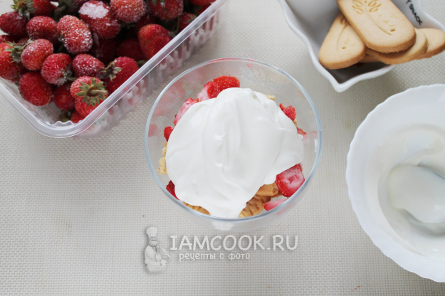 Ягоды клубники, постепенно тая, пропитывают кусочки печенья. Сметанный крем легко и мягко обволакивает все компоненты - мммм, наслаждение! Глоток кофе, беседа с подружкой и - кайф!
