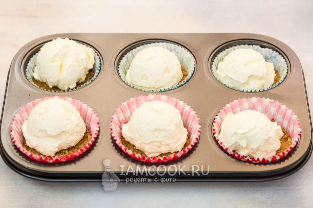 Выложите творожную массу в формочки (удобно это делать ложкой для мороженого). Разровняйте.