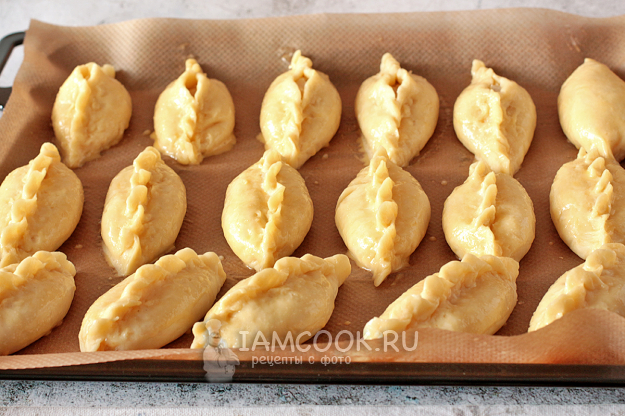 Выложите пирожки на противень с качественным пергаментом, к которому не прилипает тесто.