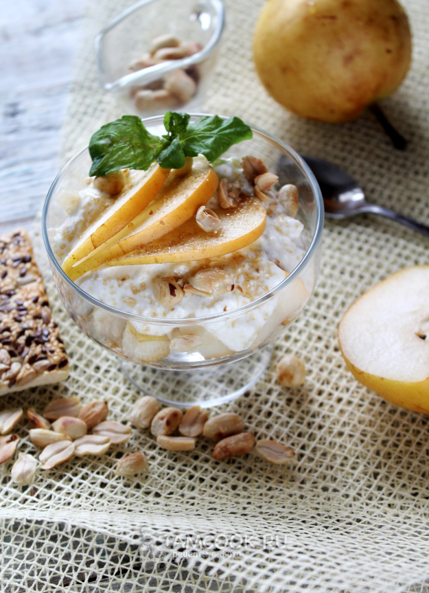 Подаем трайфл с грушей на десерт, добавив веточку мяты. Вкусно и полезно!