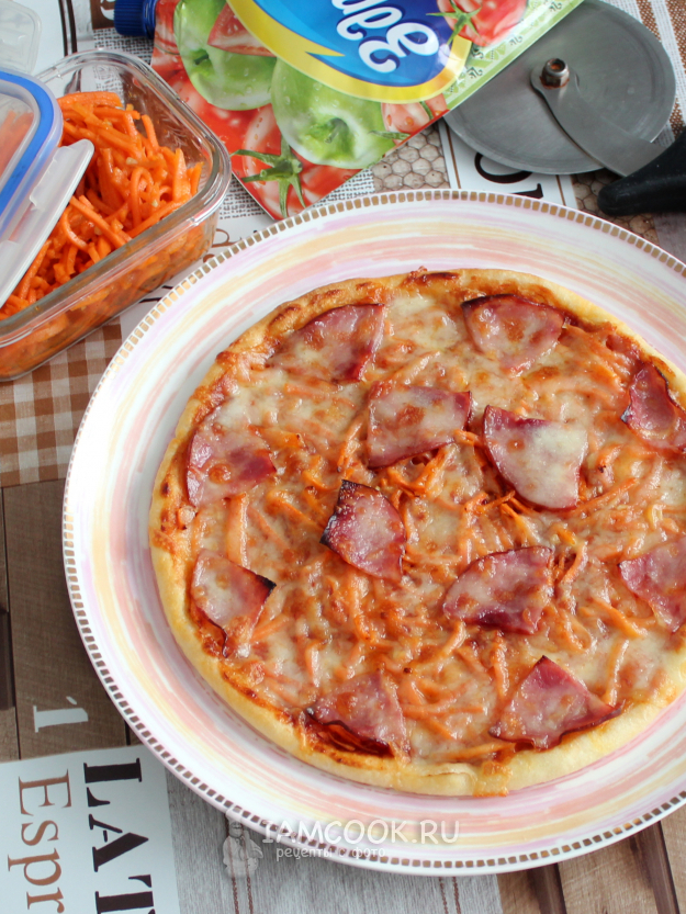 Пицца с ветчиной с морковью по-корейски оригинальная на вкус. Возьмите рецепт на заметку для разнообразия!