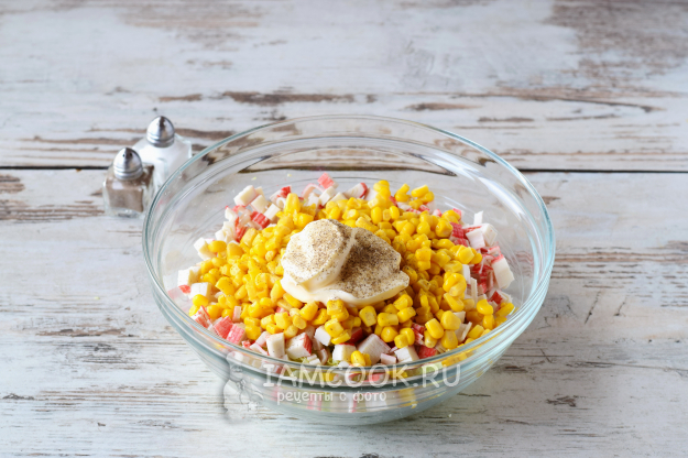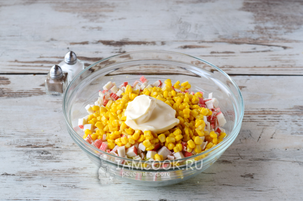 Осталось салат заправить майонезом.