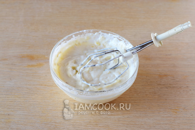 Еще раз взбиваем все ингредиенты вместе. Сливочно-банановый крем готов. Отправляем его минимум на полчаса в холодильник.