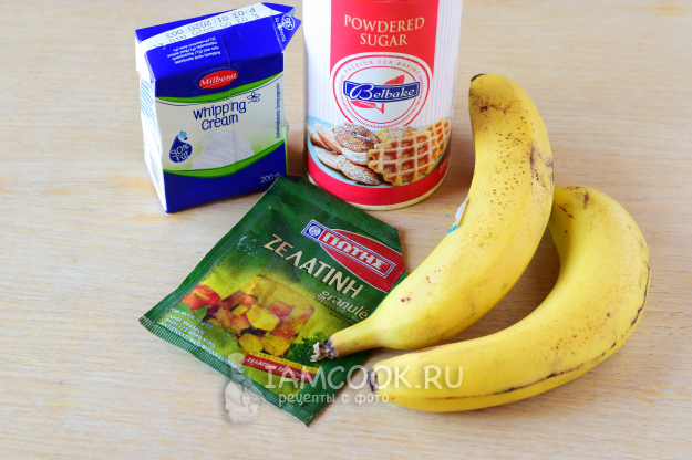 Подготовим все продукты для сливочно-бананового крема для торта. Сливки нужны 30%.