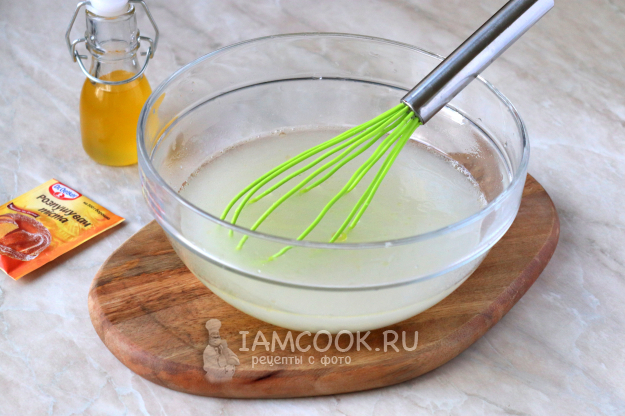 С помощью венчика перемешайте до однородной массы, чтобы не было мучных комочков. Накройте миску кухонным полотенцем и дайте немного "отдохнуть", около 10-15 минут.