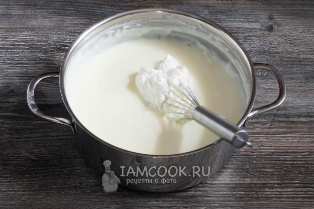Взбейте сливки в крем средней густоты.