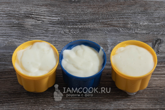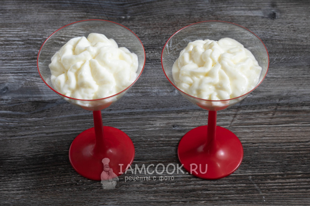 После того как пудинг перестанет парить и сравнительно остынет, вмешайте в него в 3 приёма взбитые сливки. Мешать каждую порцию нужно до полного растворения.