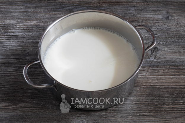 Доведите до кипения молоко (можно добавить к нему ещё 100 мл сливок дополнительно).
