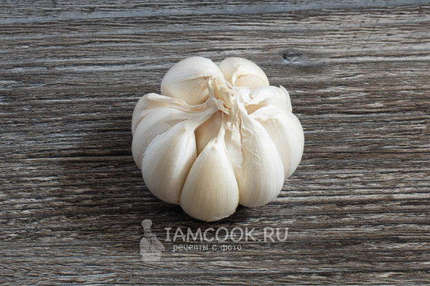 Головку чеснока очистите от слоя наружной белой шелухи.