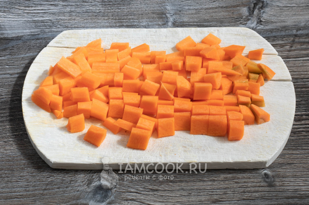 Порежьте морковь.