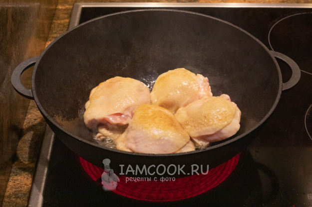 Обжарьте мясо в предварительно раскалённом казане в небольшом количестве масла со всех сторон до лёгкой золотистости.