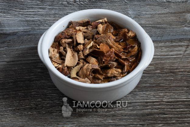 Тщательно отожмите грибы после замачивания.