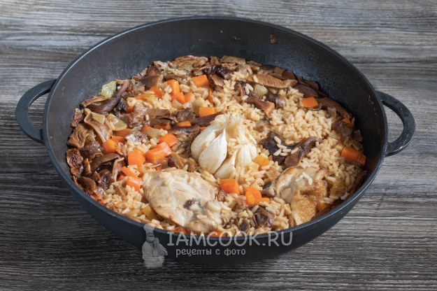 Ингредиенты для плова с сушеными грибами - перед вами.
