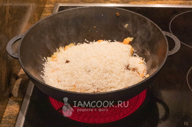 Высыпьте рис.