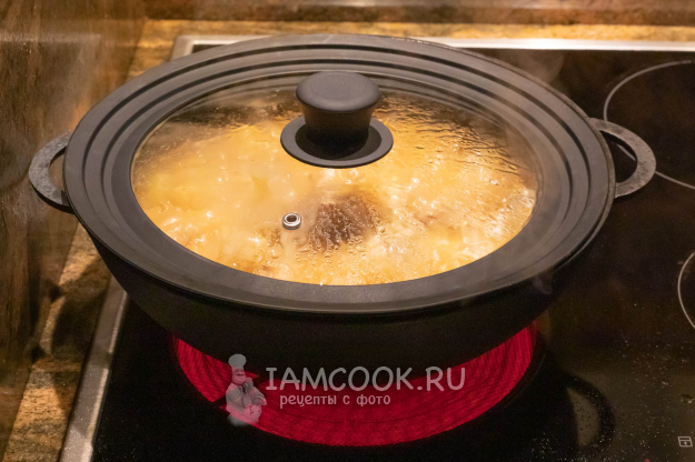 После этого варите плов всё так же под крышкой ещё 10 минут на слабом огне или на остаточном тепле конфорки электроплиты, пока не впитается вся жидкость.