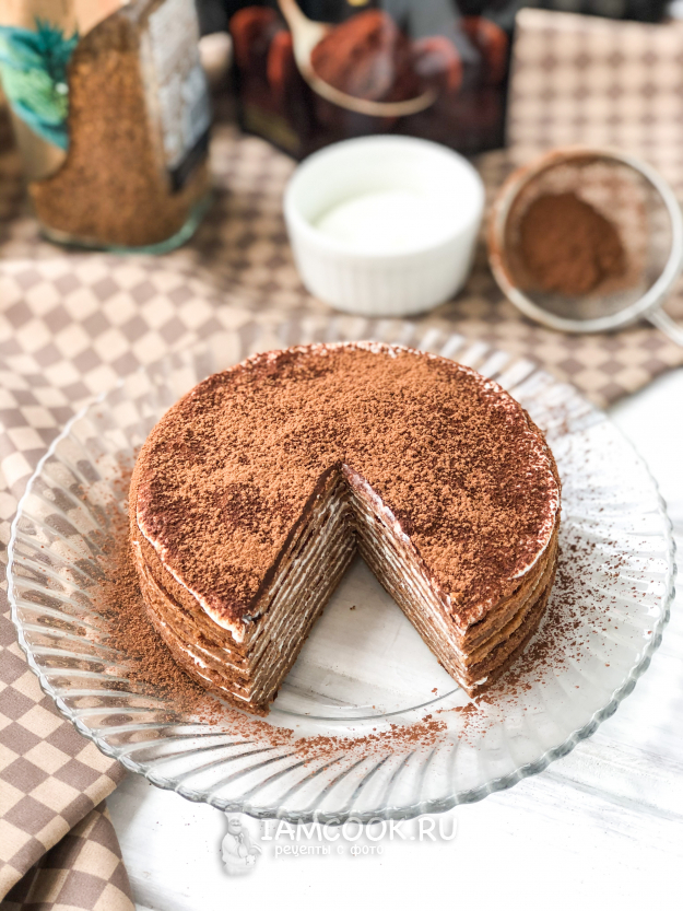 Блинный торт «Тирамису» с творожным кремом готов. Приятного аппетита.