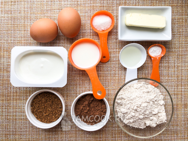 Для приготовления блинного торта «Тирамису» с творожным кремом понадобятся следующие ингредиенты.