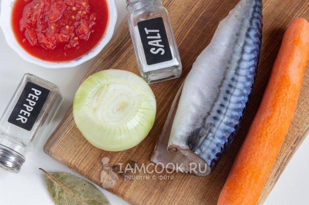 Ингредиенты для приготовления тушеной скумбрии с морковкой и луком в мультиварке - перед вами. Если необходимо, почистите и помойте рыбу, а также овощи.