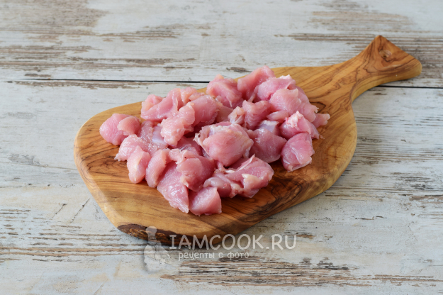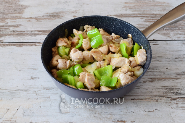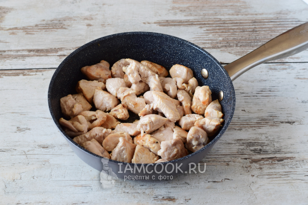 В сковороде разогреем растительное масло, и обжарим индейку на сильном огне, помешивая, минут 5-6.