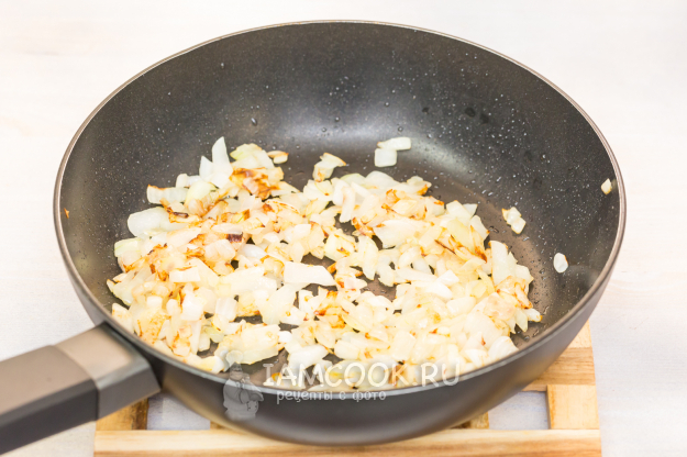 Лук нарежьте мелко и обжарьте на подсолнечном масле (1-2 ст.л.) до мягкости.