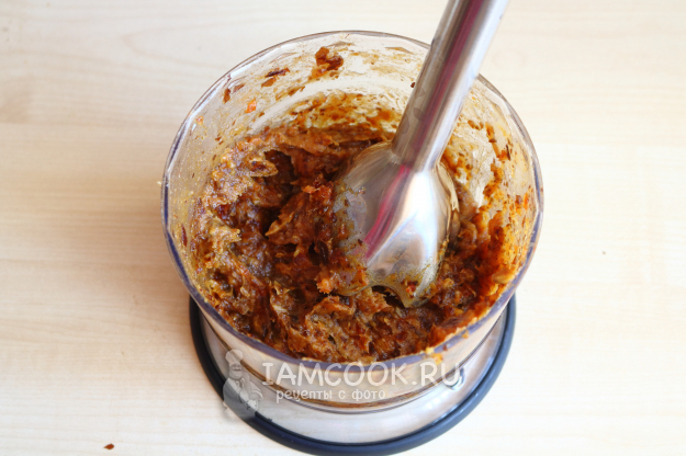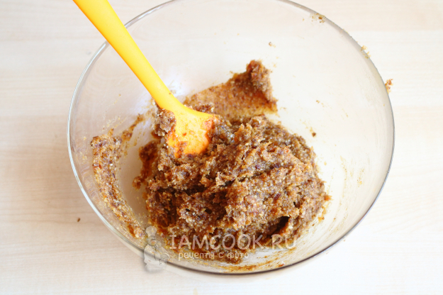 Перемалываем сначала ножами в блендере. Если финики мягкие, этого будет достаточно. Ежели остаются нежелательные кусочки - поработайте погружным блендером до получения однородной консистенции. Также, если финики жестковаты и масса получается очень плотной, можно влить пару чайных ложек воды. Это зависит от получаемой консистенции.