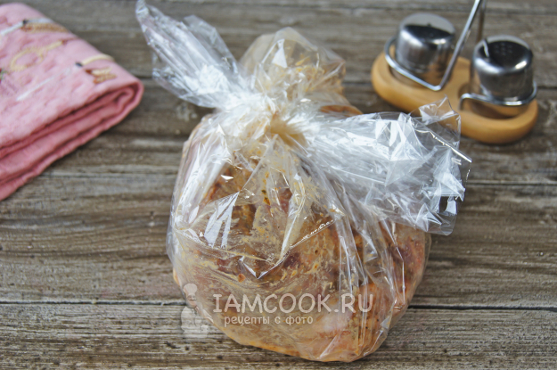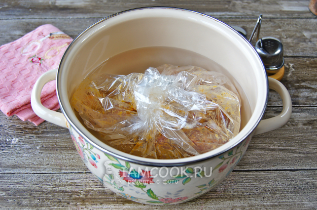 Выложите в рукав для запекания и завяжите края сверху, или обмотайте в несколько слоев пищевой пленки.