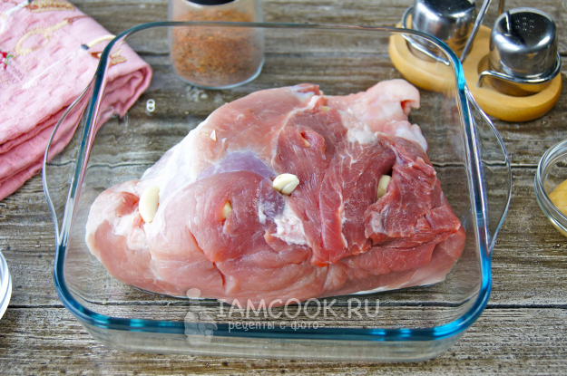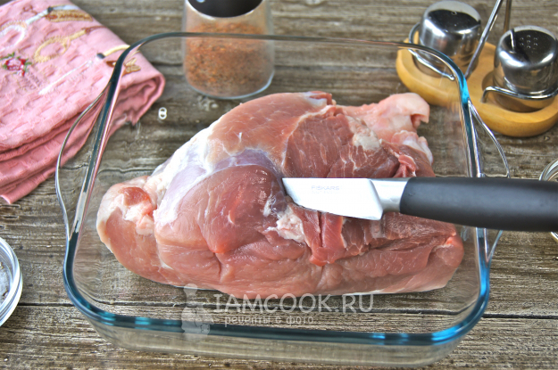 Свинину промойте и обсушите бумажным полотенцем, сделайте несколько проколов ножом, но не до конца.