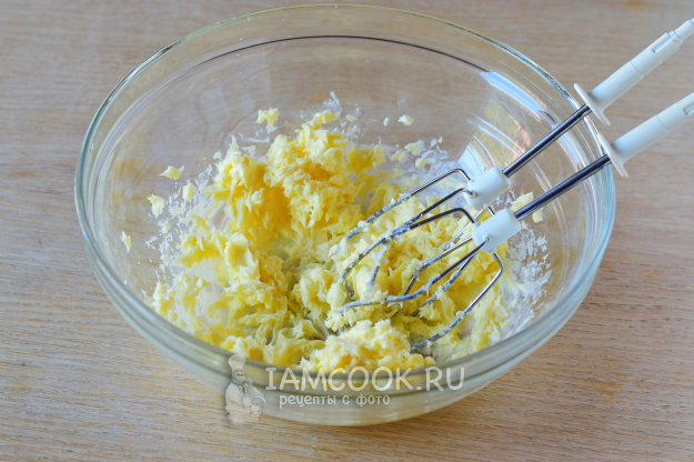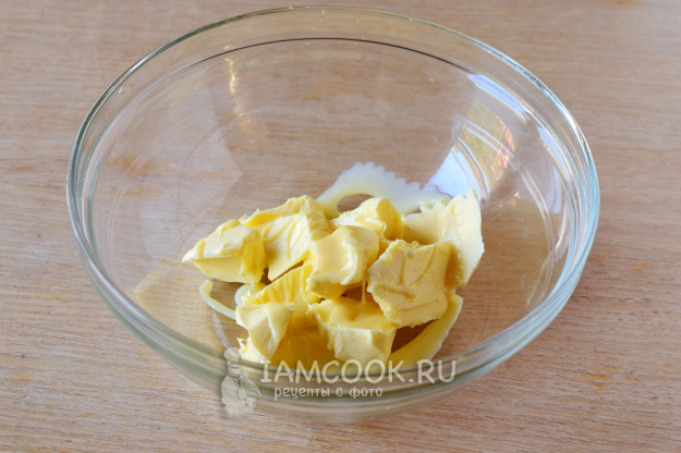 Размягченное масло нарезаем небольшими кубиками и выкладываем в миску.