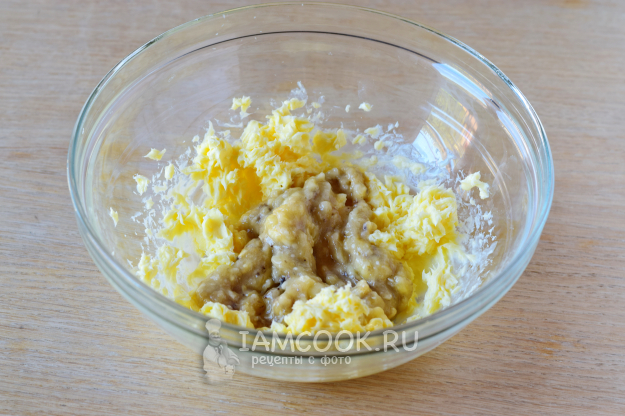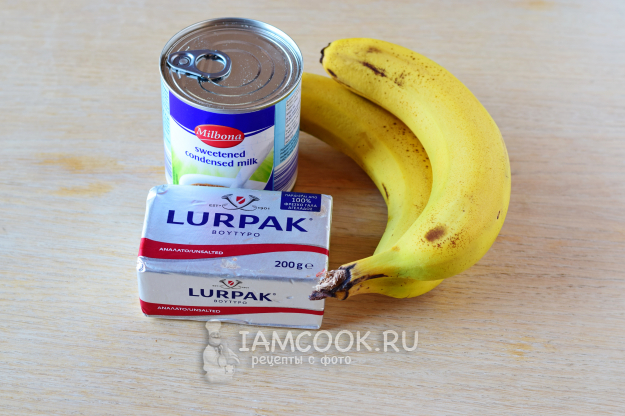 Подготовим все продукты для бананового крема со сгущенкой для торта. Масло следует заранее достать из холодильника и дать ему полежать при комнатной температуре полчаса, чтобы оно размягчилось.