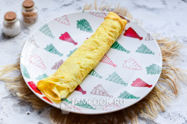 После свернуть рулетиком. Перед подачей нарезать блинчики и подавать к столу.