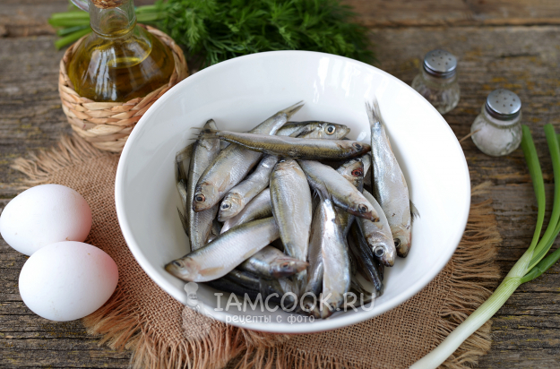 Подготовьте все необходимые продукты для приготовления биточков из свежей кильки по-одесски. Зелень помойте, обсушите.